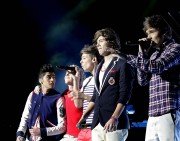 The One Direction guys sing out on stage as they perform at the Manchester O2 Apollo arena on Thursday night (December 22).
